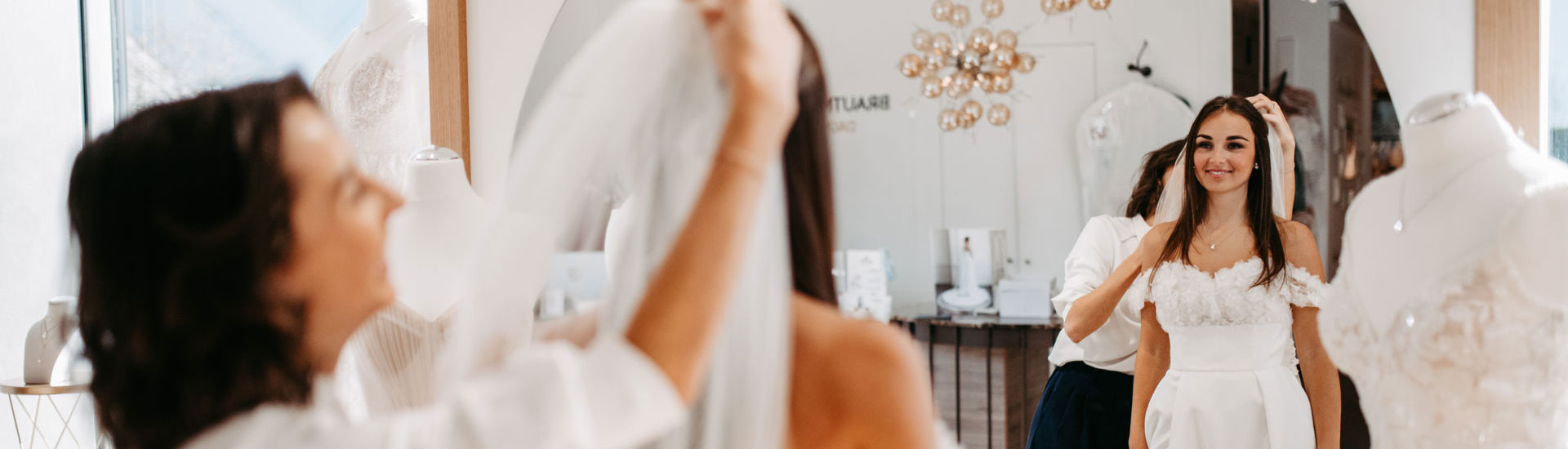 Ein Brautschleier ist DAS Brautaccessoire schlechthin, und besonders zum schlichten Brautkleid ist ein Schleier ein wunderschönes Accessoire. Vom einfachen Schleier über den Brautschleier mit Spitze bis zum modernen Schleier mit Glitzer oder Strasssteinen findest du bei Brautmoden Tirol eine große Auswahl an Hochzeitsschleiern – immer passend zu deinem Brautkleid und deinem ganz persönlichen Stil.